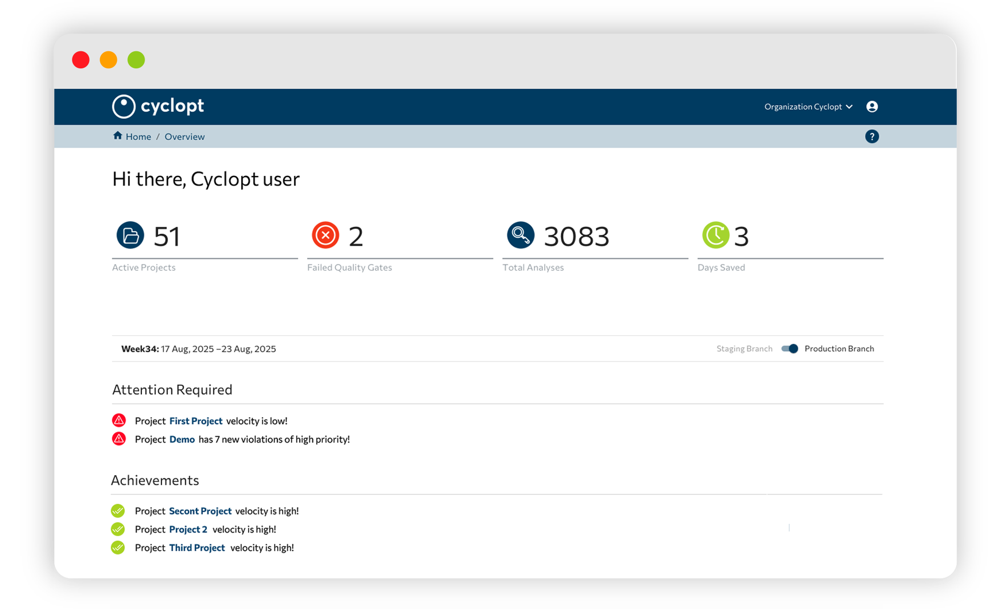 Your heads-up display when running a software team. Get a clear picture of how your software projects are going. Identify pain points, act fast, and avoid risks building up.