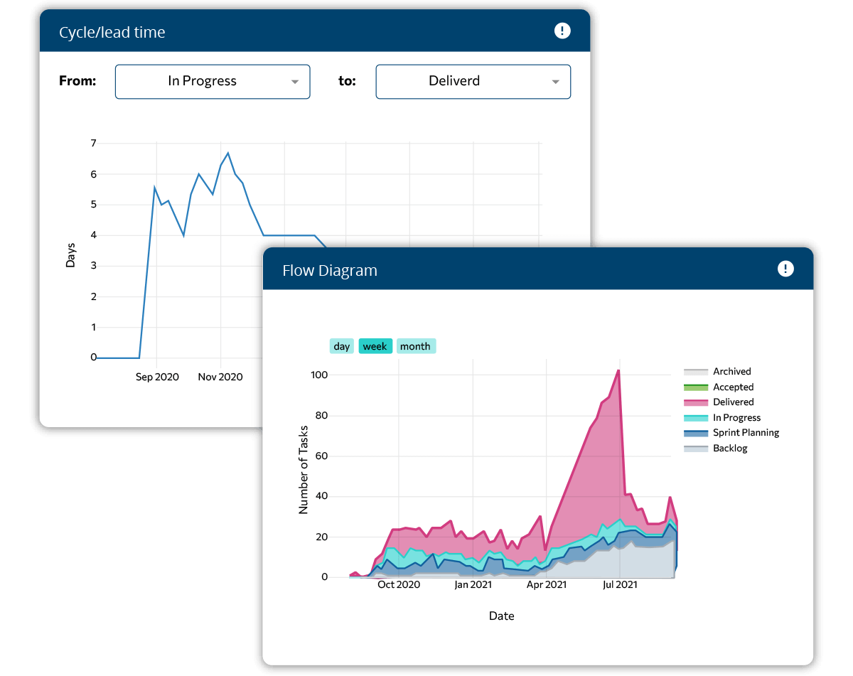 Use our workload analytics to track the lifecycle and lead time of your project. Organize the project workload and identify bottlenecks more efficiently than ever.